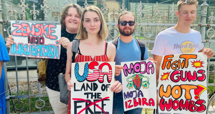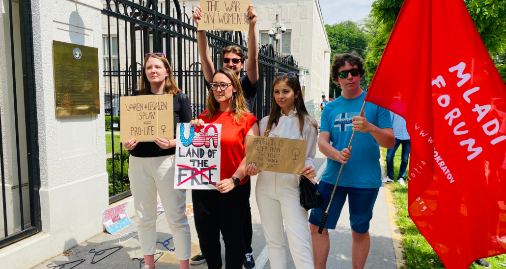 Mladi forum SD je danes pred veleposlaništvom ZDA s simbolnim protestom izrazil solidarnost do žensk, ki jim je bila odvzeta pravica do splava in s tem pravica do svobodnega odločanja o rojstvu otrok. S prelomno razsodbo Roe proti Wade, ki je bila sprejeta 24. junija 2022 v ZDA, je namreč okoli 36 milijonov žensk ostalo brez pravice do splava.