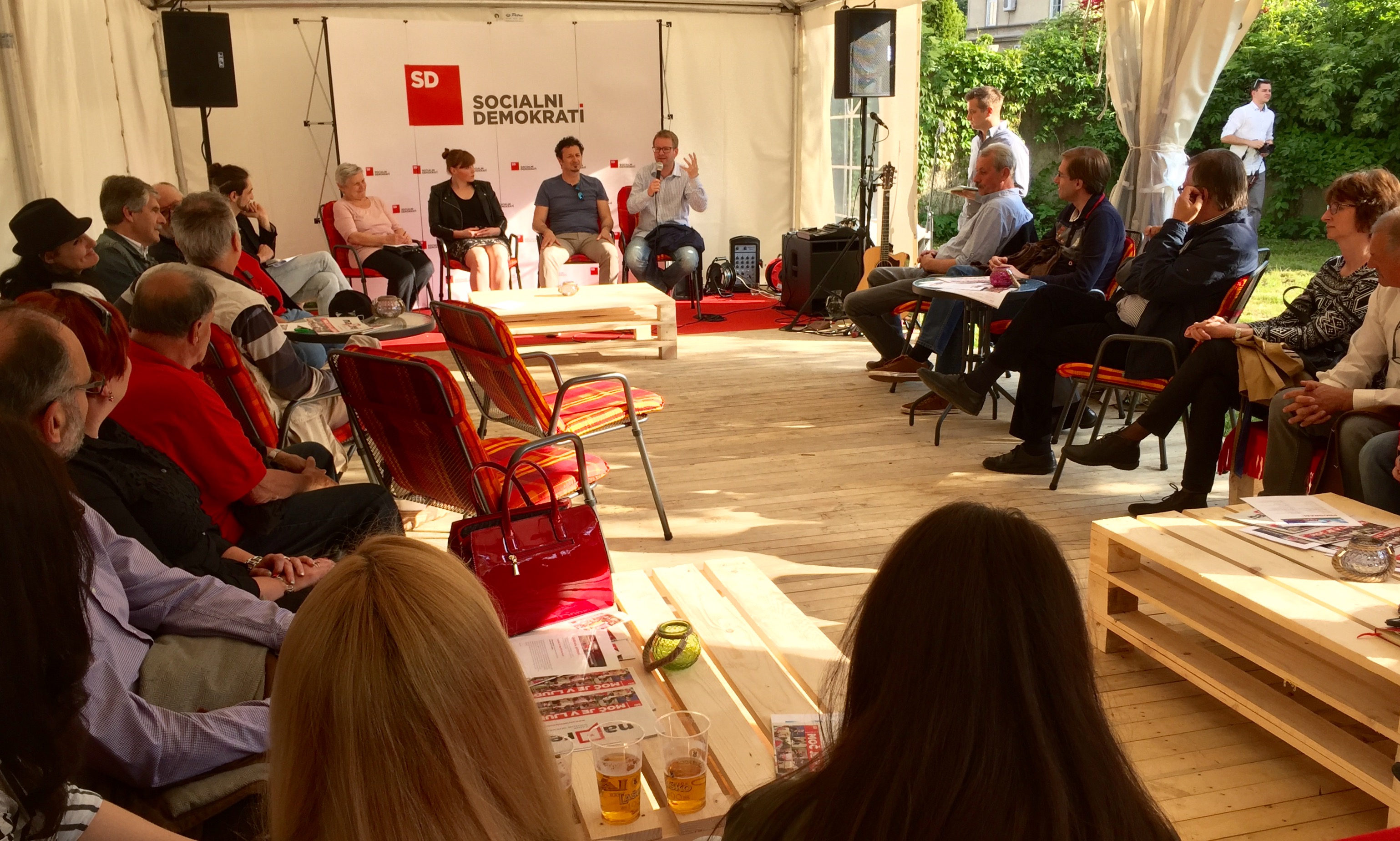 Socialni demokrati smo v mesecu maju, ob letošnji 120. obletnici strankarske organiziranosti Socialne demokracije na Slovenskem, na vrtu sedeža stranke v Ljubljani prvič organizirali Festival Levstikova, v okviru katerega smo izvedli sedem tematskih pogovornih omizij s številnimi gosti. V prvem majskem tednu ste tako lahko spremljali omizje na temo članstva v stranki, v drugem tednu sta sledili omizji z naslovom “Država in Ustava” z dr. Andražom Terškom in dr. Mirkom Pečaričem ter “Izzivi evropske Socialne demokracije” s Sonjo Lokar in dr. Jernejem Pikalom ter Nevo Grašič. V tretjem tednu je potekalo omizje z naslovom “Razvoj stranke v samostojni državi” na katerem so sodelovali dr. Janez Kocijančič, Breda Pečan, Angela Murko Pleš in dr. Igor Lukšič, ki so skupaj z moderatorjem omizja Denisom Sarkićem spregovorili tudi o trenutnem položaju stranke.