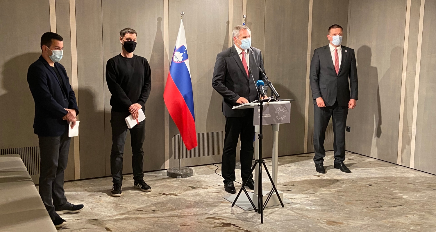 Mag. Dejan Židan med skupno novinarsko konferenco