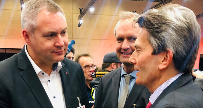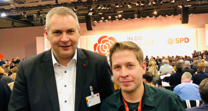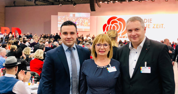 Predsednik Socialnih demokratov mag. Dejan Židan se danes v Berlinu udeležuje kongresa Socialdemokratske stranke Nemčije (SPD), na katerem sta vodenje stranke tudi uradno prevzela Norbert Walter-Borjans in Saskia Esken. Židan je novemu vodstvu stranke, ki ga prvič v 150-letni zgodovini stranke sestavljata ženska in moški, na kongresu čestital in se zavzel za okrepitev sodelovanja med strankami v času, ko evropska socialna demokracija išče načine za ponovni vzpon socialdemokratske ideje.